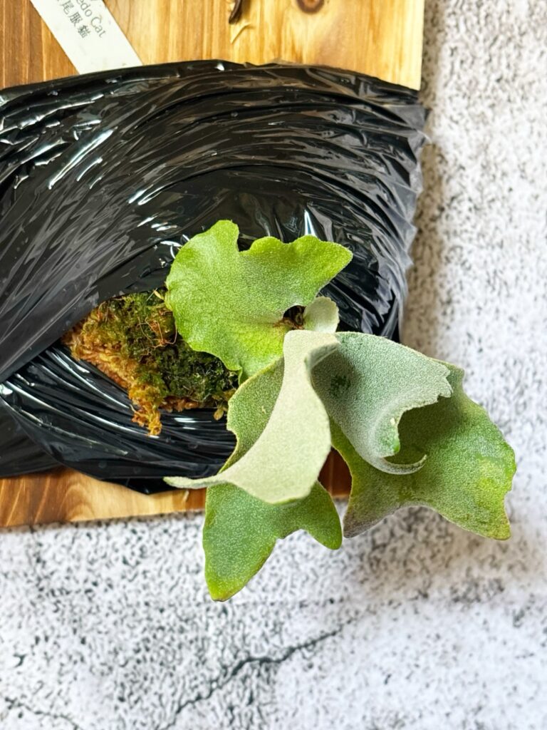 ビカクシダ・タキシードキャット Platycerium Tuxedo Cat (P. ginka x Wachara x White Princess)Mix Sporeling